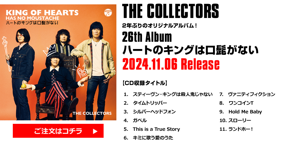ジューシーマーマレード 13 VINYL SINGLES 別世界旅行 〜A Trip in Any Other World〜 古市コータロー / 東京 YOUNG MAN ROCK ウェルカム・トゥ・フラワー・フィールズ ライブ・ショウ 1986 Roll Up The Collectors 言いたいこと 言えないこと 言いそびれたこと 鳴り止まないラブソング 地球の歩き方 青春ミラー(Teenage Young Love) ビートシンフォニック+3 キャンディマン+3 SUPERSONIC SUNRISE MUCH TOO ROMANTIC!〜The Collectors 30th Anniversary CD/DVD Collection Request Hits 愛ある世界 ピラニア通りのブルース ピクチャーレスク・コレクターズ・ランド 〜幻想王国(まぼろしのくに)のコレクターズ〜 僕はコレクター 虹色サーカス団 ぼくを苦悩させるさまざまな怪物たち THE COLLECTORS/”This is Mods”35th anniversary live at Nippon Budokan 13 Mar 2022 THE COLLECTORS/Filmography CLUB QUATORO MONTHLY LIVE 2018 ”LAZY SUNDAY AFTERNOON” 映画〜さらば青春の新宿JAM〜 THE COLLECTORS live at BUDOKAN”MARCH OF THE MODS”30th anniversary 1 Mar 2017 THE COLLECTORS/THE COLLECTORS TOUR 2013 MOD TONE -TOUR FINAL at STUDIO COAST- THE COLLECTORS in ULTRA MOD GEAR THE COLLECTORS in SUPER MOD GEAR THE COLLECTORS in LIVE TV THE COLLECTORS/THE COLLECTORS NEW CLIPS 2