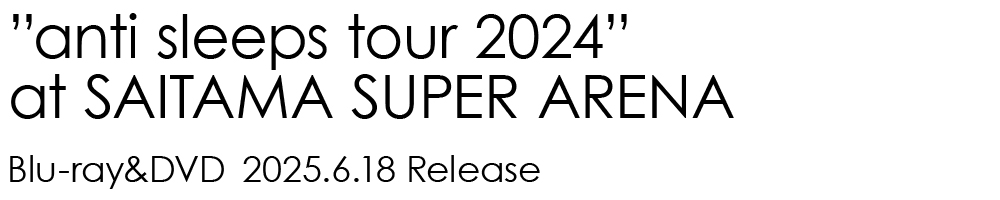 2024年8月から全国15ヶ所32公演で行われたback number 初のアリーナ対バンツアー "anti sleeps tour 2024"から10月27日(日)さいたまスーパーアリーナ公演のライブ映像を収録! Blu-ray(初回限定BOX) DVD(初回限定BOX) Blu-ray(通常盤) DVD(通常盤) DISCOGRAPHY Album スーパースター ブルース ラブストーリー シャンデリア MAGIC ユーモア アンコール Single はなびら 花束 思い出せなくなるその日まで 恋 日曜日 わたがし 青い春 高嶺の花子さん fish ヒロイン クリスマスソング ハッピーエンド 僕の名前を 瞬き 大不正解 オールドファッション HAPPY BIRTHDAY 黄色 新しい恋人達に Blu-ray&DVD ”love stories tour 2014〜横浜ラブストーリー2〜” All Our Yesterdays Tour 2017 at SAITAMA SUPER ARENA NO MAGIC TOUR 2019 at 大阪城ホール in your humor tour 2023 at 東京ドーム back number 関連タイトル一覧