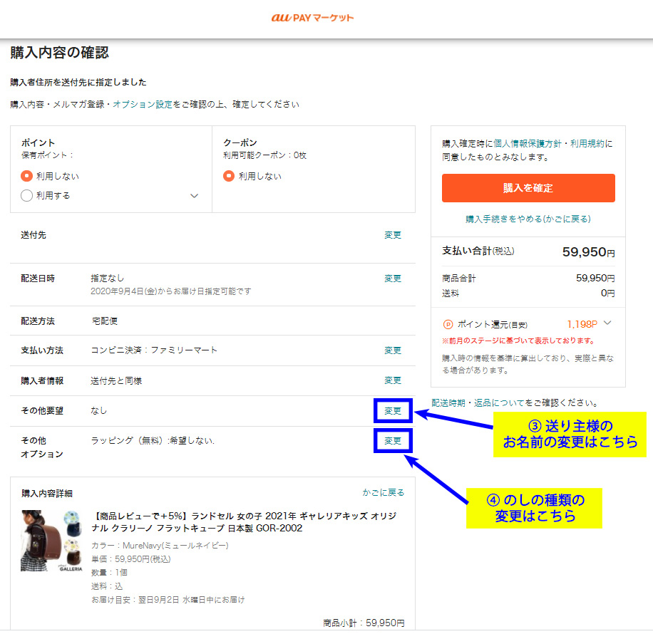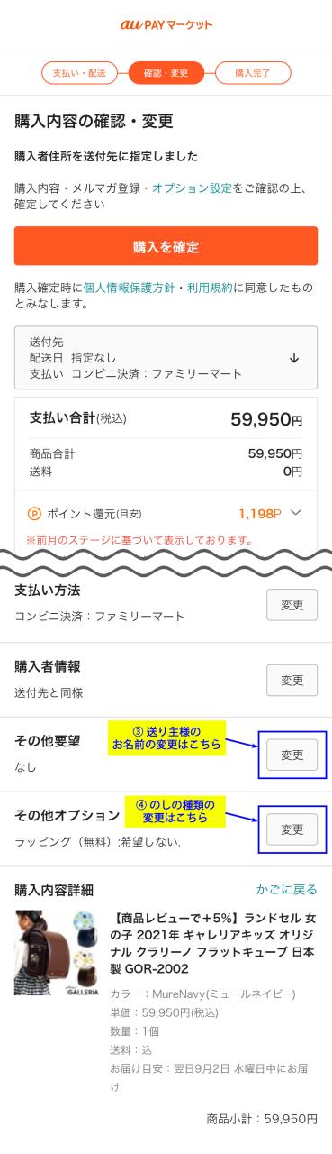 ①「ご購入手続きへ進む」から、
