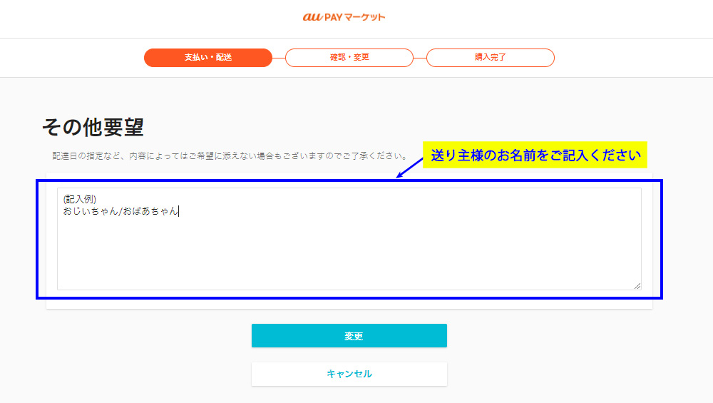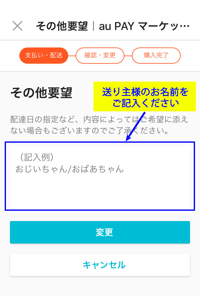 ②「その他要望欄」に、のしに記載する贈り主様のお名前をご記入ください。