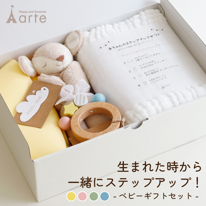 出産祝い ギフトセット Angel Dear エンジェルディア ブランキー 男の子 女の子 ガーゼブランケット タオル 木のおもちゃ シリコンビブ かわいい プレゼント