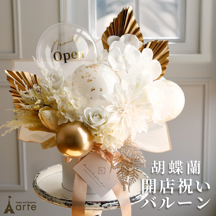 バルーン電報 開店祝い 結婚祝い 胡蝶蘭 花 名入れ 立札 エレガント 華やか 大きい 誕生日 記念日 周年祝い 開業祝い 造花 メッセージカード 11000円 プレゼント