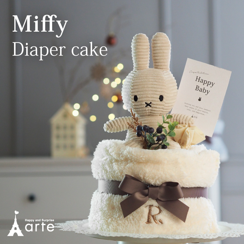 出産祝い ミッフィー おむつケーキ 名入れ刺繍 ブランケット 男の子 女の子 双子 ぬいぐるみ miffy プレゼント グッズ コーデュロイ パンパース ベビーギフト