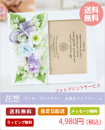 プリザーブドフラワー お供え専用 写真立てをご紹介。当店の写真立ては、全てフォトプリントサービスがございます。