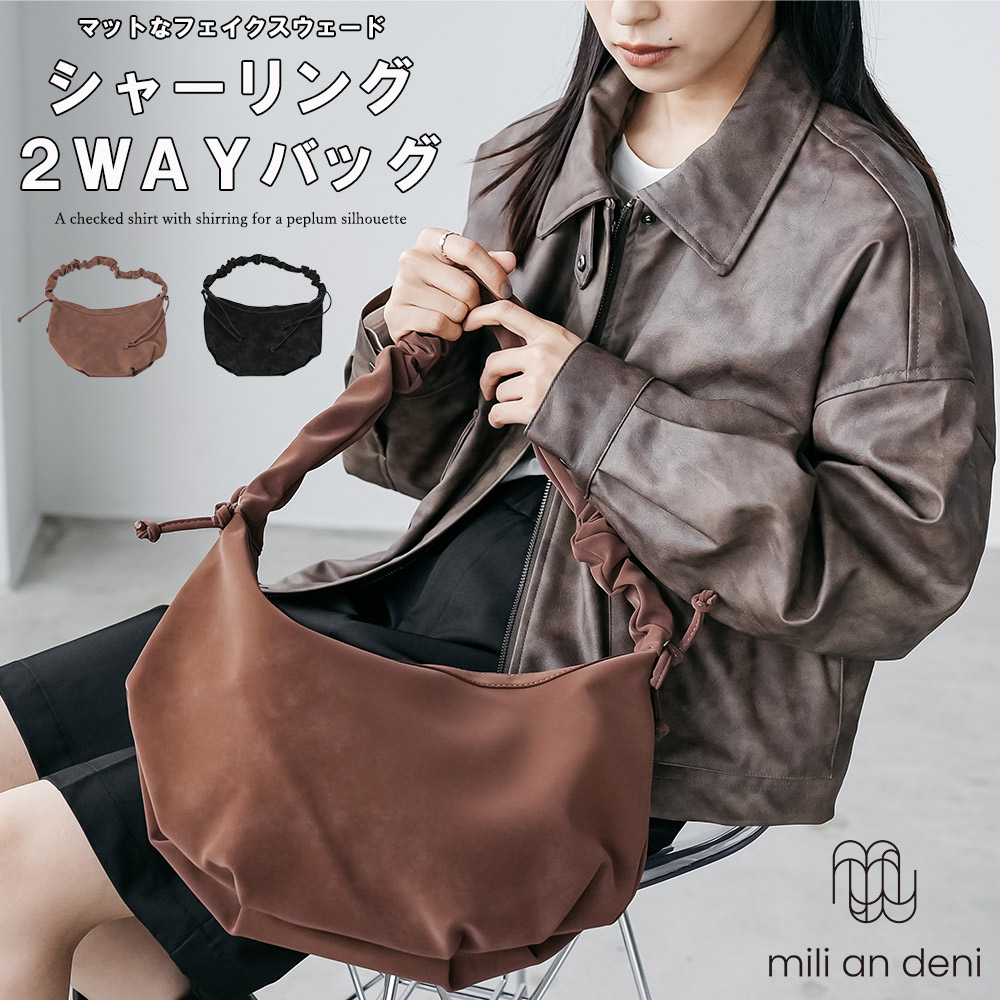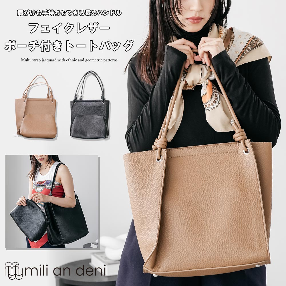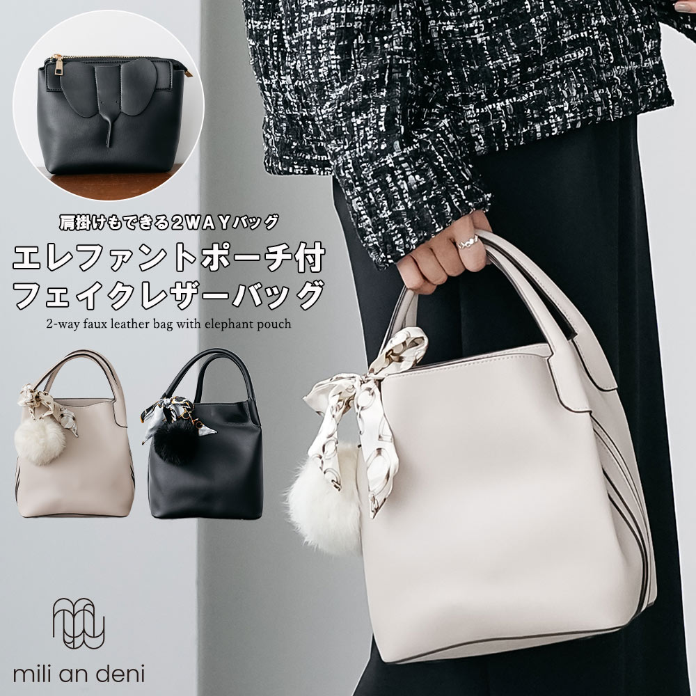 エレファントポーチ付き2WAYフェイクレザーバッグ