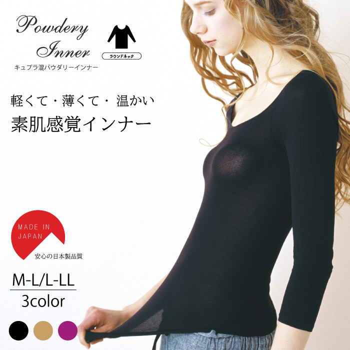 ライト&ウォーム キュプラ混インナー ラウンドネック