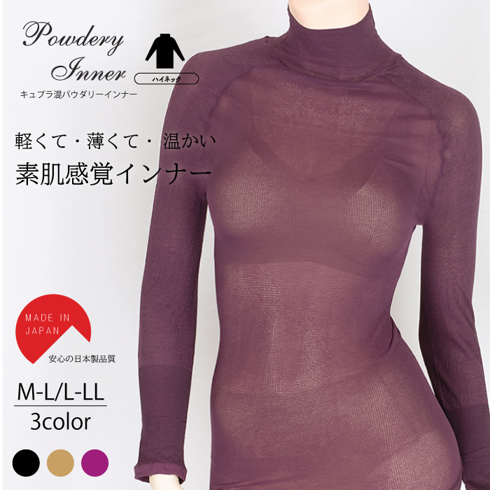 首元を温めるハイネック仕様。軽くて薄くて温かいインナーです。