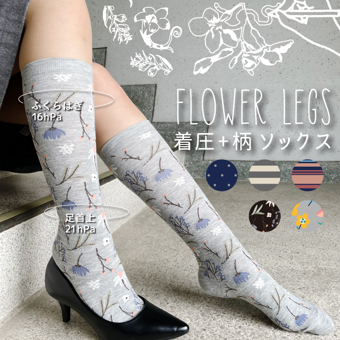 足首からしっかり段階着圧。好みで選べる可愛い柄デザイン