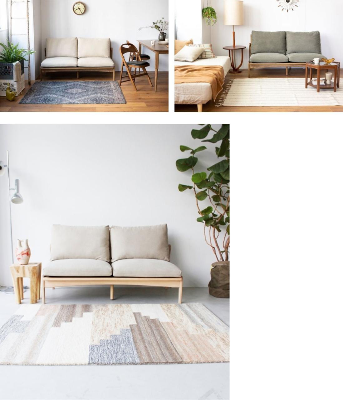 大きなソファーを1台ドカンと置くのも良いですが、コンパクトなソファーでラウンジチェアを組み合わせたりすると、より動きが出てコーディネートの幅が広がります。