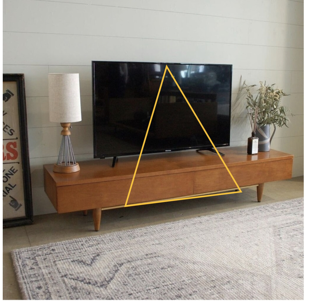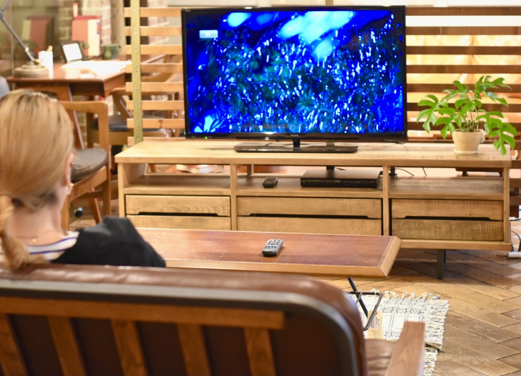 テレビを置いた際に、三角形の構図が出来る様にテレビより一回り大きい幅を選ぶのがベストです。
