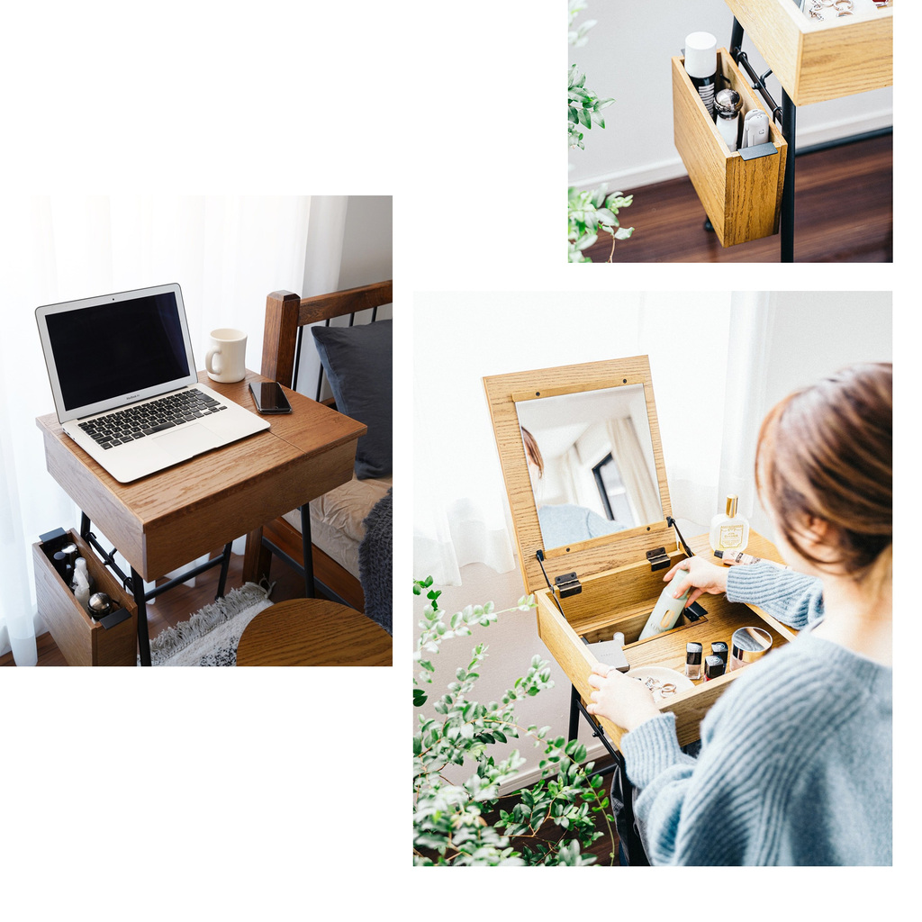鏡付きデスクドレッサーとしてはもちろんですが、簡易デスクとしても。