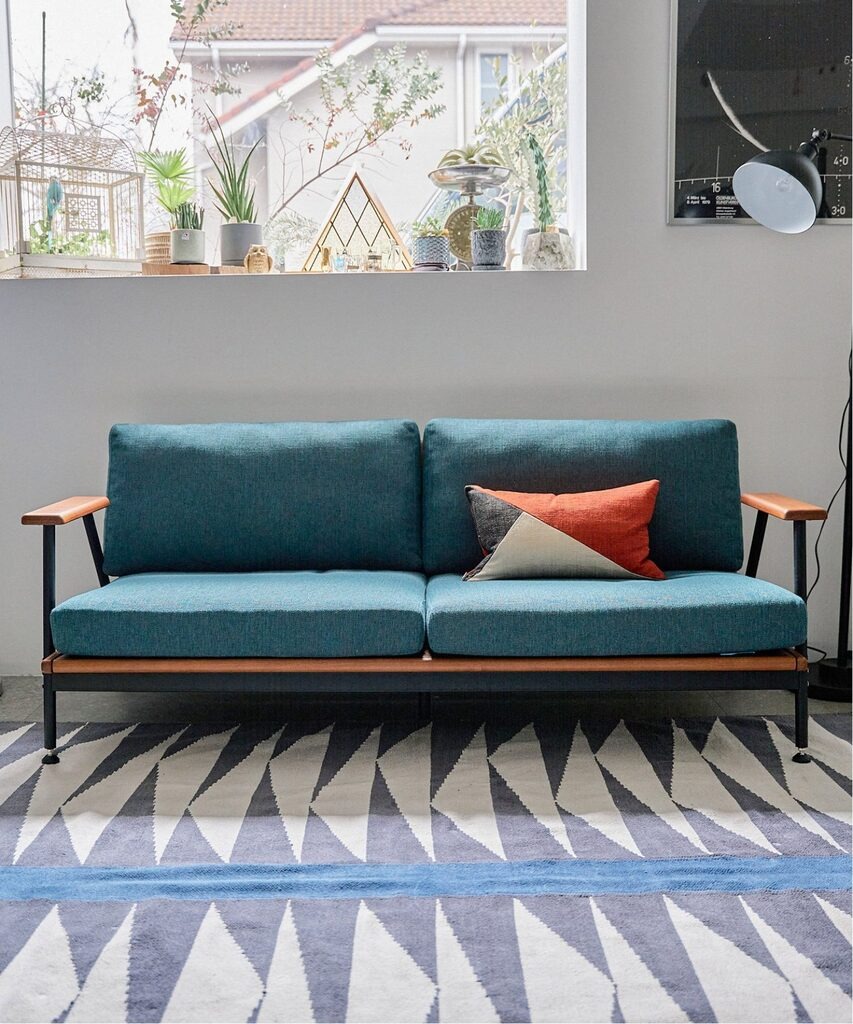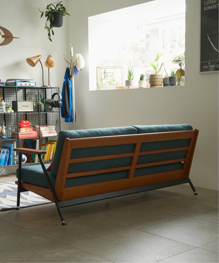 グリーンがかった鮮やかなブルー印象的なCURL SOFAフレームのスチール素材がすっきりとした印象に見せてくれます。