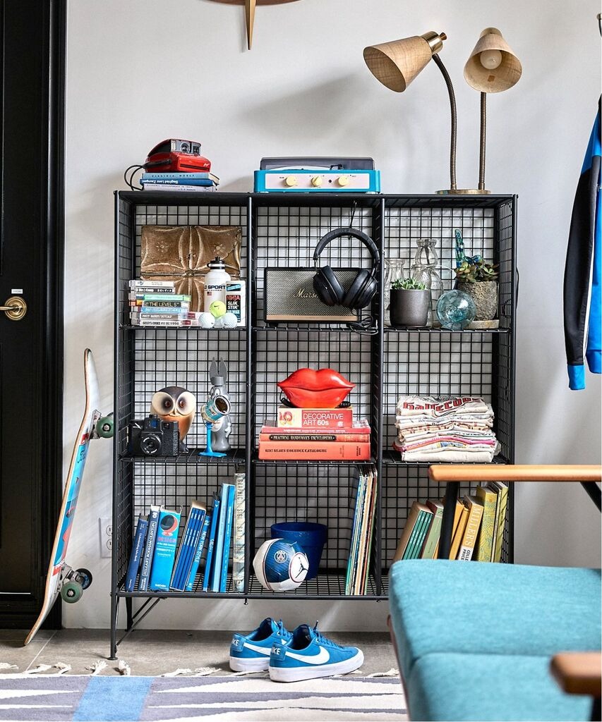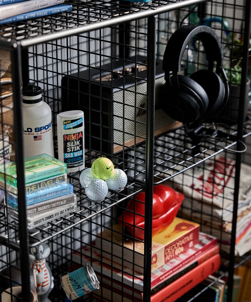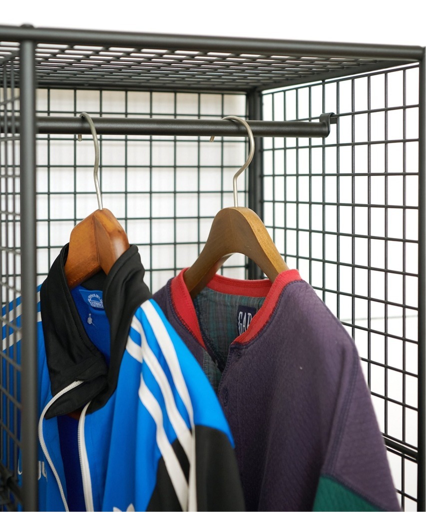 お気に入りの雑貨や洋服、本、レコードや植物など、飾って楽しめるアパレル什器のような収納家具です。