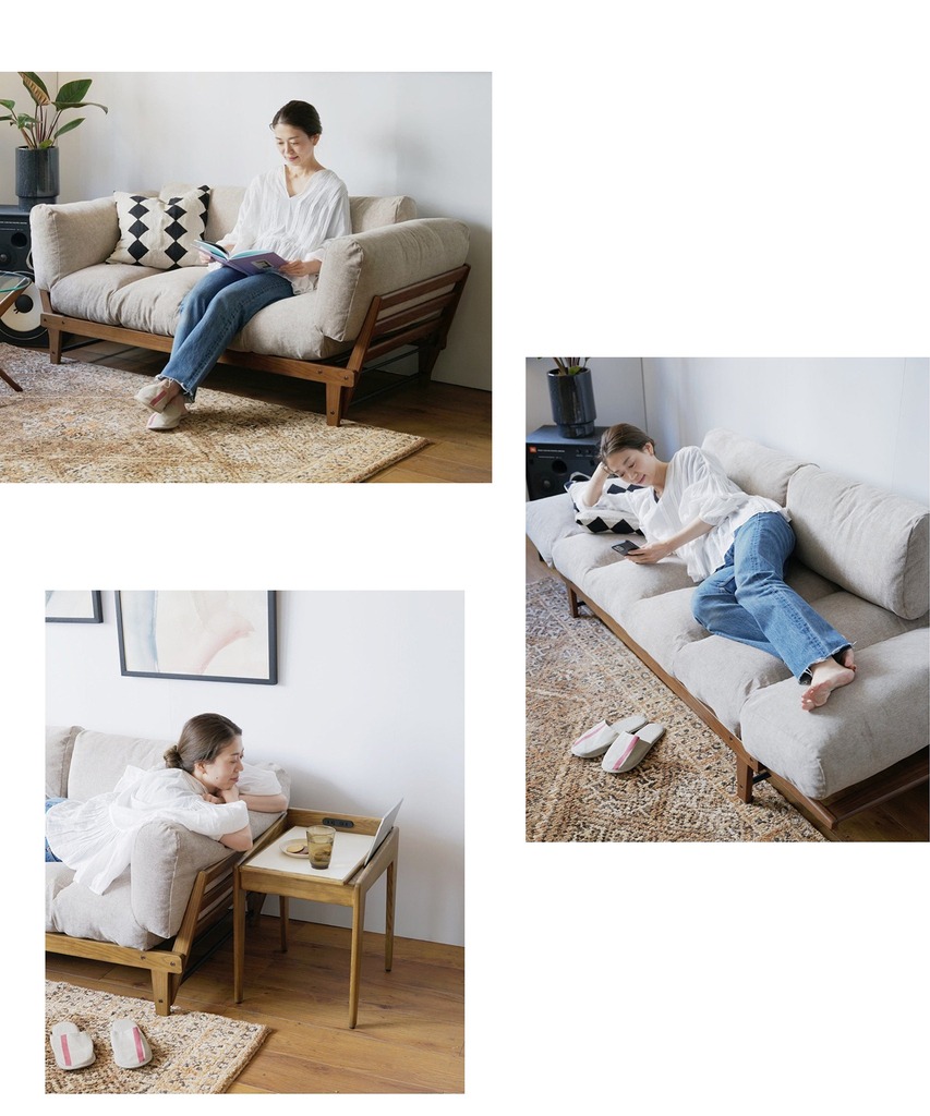 ALVESTA SOFAなら、1台で3通りのスタイルでくつろいでいただけます。