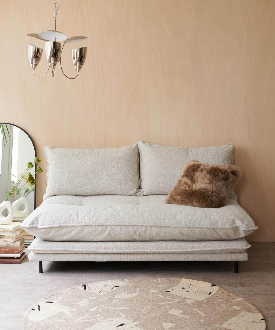 ボリュームのあるクッションはとても柔らかそうに見えますが、しっかりと詰まっているので程よい柔らかさ。