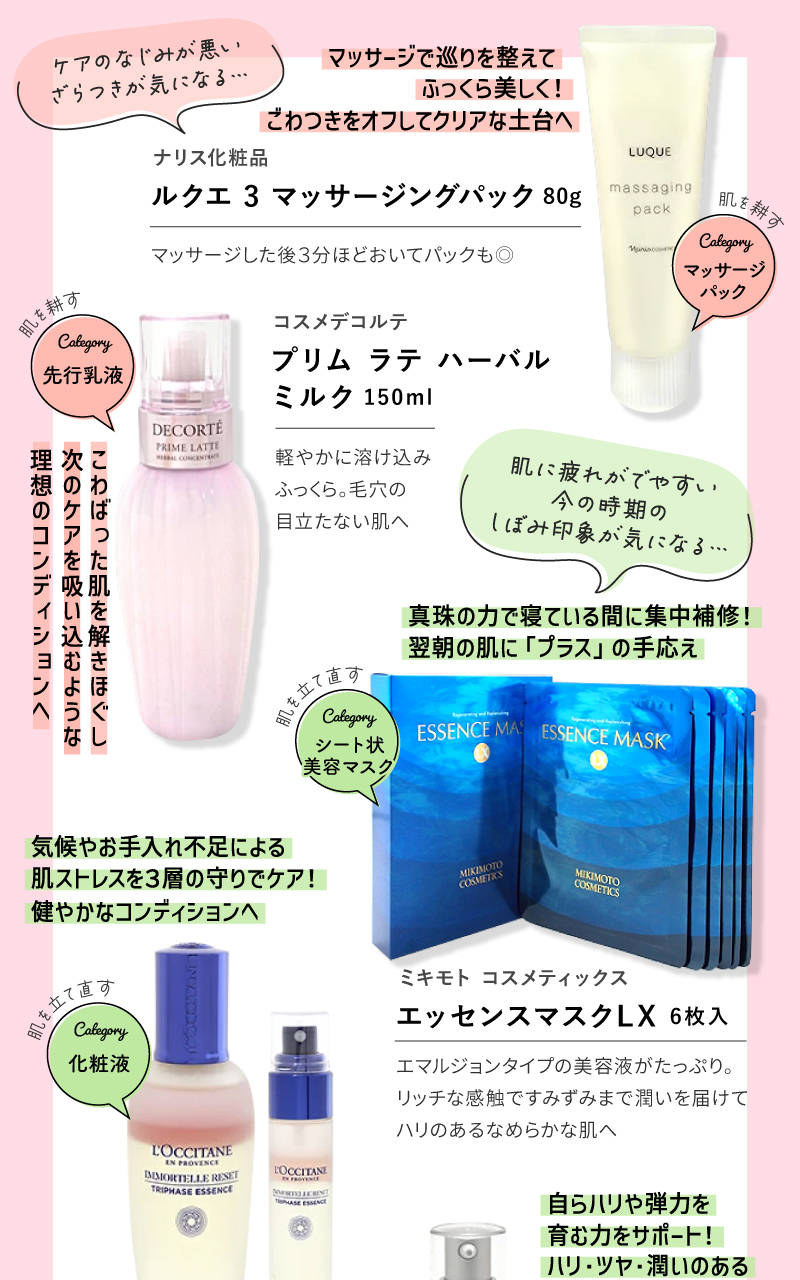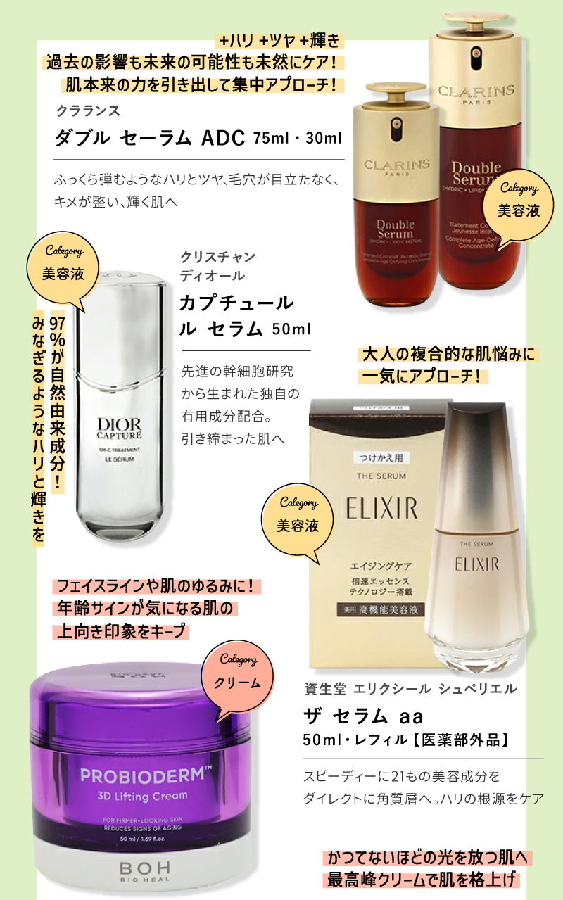 一気にハリ肌まで押し上げる精鋭たちをお悩みごとにピックアップ!